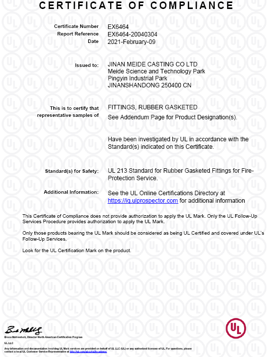 MEIDE GROUP has approved by UL for grooved couplings 1GH/1NH