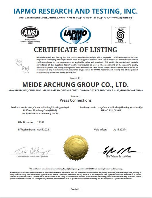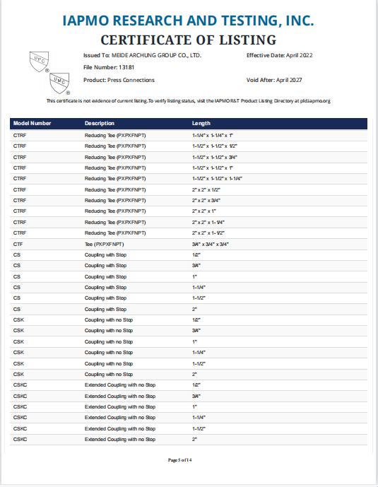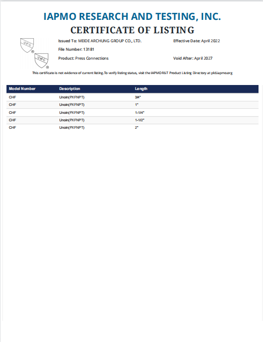 The grooved fittings, grooved mechnical tee (Fig. 3G), light duty grooved mechnical tee (Fig. 3GS), threaded mechnical tee (Fig. 3J), light duty threaded mechnical tee (Fig. 3JS), U-bolt mechnical tee (Fig. 3L), from Meide Group, have been CNBOP approved.