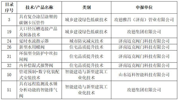 玫德集團入圍山東省建筑業(yè)推廣應用技術目錄技術清單