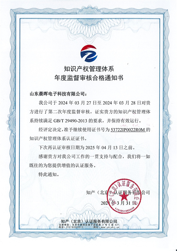 此次通過的知識產(chǎn)權認證監(jiān)督審核,涵蓋了山東晨暉在產(chǎn)品研發(fā)、生產(chǎn)流程等方面的管理體系,充分彰顯了山東晨暉在知識產(chǎn)權保護和管理方面的成熟和規(guī)范。