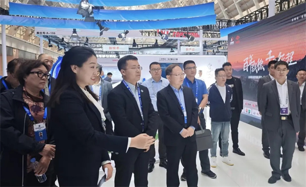 山東省城鎮(zhèn)供排水協(xié)會(huì)會(huì)長鄧杰(左一)蒞臨玫德展位