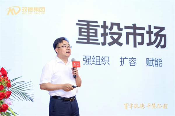 玫德集團(tuán)黨委書記、董事局副主席郭雷發(fā)表了題為《轉(zhuǎn)型賦能齊發(fā)力 千億征程共輝煌》的專題報告,從“強(qiáng)組織、擴(kuò)容、賦能、策略支持”四個方面表述了玫德將重投市場,以更加豐富的產(chǎn)品和解決方案,更加強(qiáng)大的組織和團(tuán)隊,更大力度的政策和資源,與全國合作伙伴齊手并進(jìn),共赴千億,共鑄新輝煌!