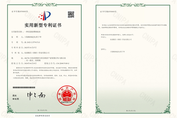 在追求卓越和創(chuàng)新發(fā)展的道路上,玫德從未停止腳步。近日,玫德雅昌(鶴壁)管業(yè)有限公司再次取得了驕人成績(jī),憑借先進(jìn)的智能制造能力和創(chuàng)新研發(fā)實(shí)力,順利通過(guò)了2024年度河南省智能車(chē)間認(rèn)定,同時(shí)獲得了易裝配槽鋼底座的實(shí)用新型專(zhuān)利證書(shū)。這不僅是對(duì)玫德技術(shù)創(chuàng)新和智造實(shí)力的認(rèn)可,更是對(duì)品牌價(jià)值的再一次肯定。