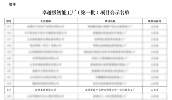工業(yè)和信息化部公示卓越級智能工廠(第一批)項目名單,玫德集團“高端管路產(chǎn)品物流調(diào)度運營一體化智能工廠”成功入選。