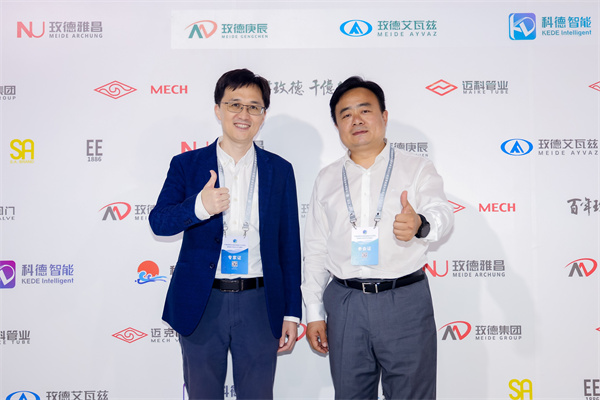玫德集團黨委書記、董事局副主席郭雷與清華大學(xué)給水排水教研所副研究員、博士生導(dǎo)師陳超現(xiàn)場交流