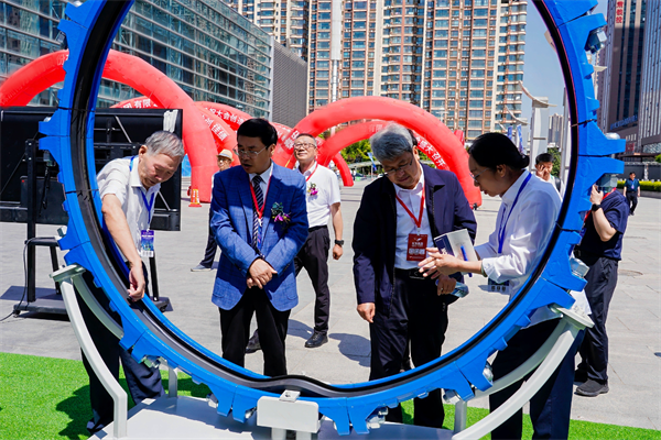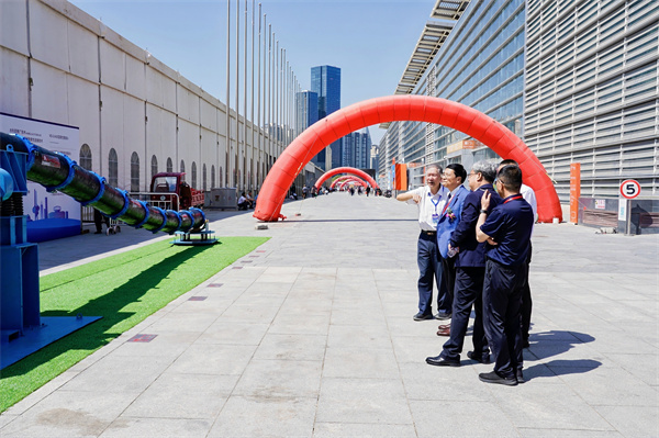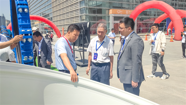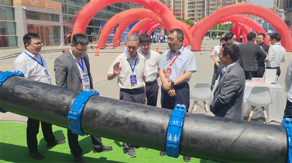 原甘肅省水利廳一級(jí)巡視員、甘肅省水利學(xué)會(huì)理事長吳天臨參觀玫德集團(tuán)自主研發(fā)的大口徑鋼管柔性連接技術(shù)
