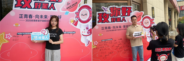 平陰總部與科創(chuàng)中心的巨幅簽名墻前,新員工們莊重簽下姓名,筆墨間盡顯青春抱負(fù)??苿?chuàng)中心特設(shè)“‘玫’好星人通行證”主題相框,新員工手持“hello,‘玫’好星人”手舉牌創(chuàng)意留影。鏡頭定格的一張張笑臉,成為職業(yè)生涯的珍貴扉頁(yè)。
