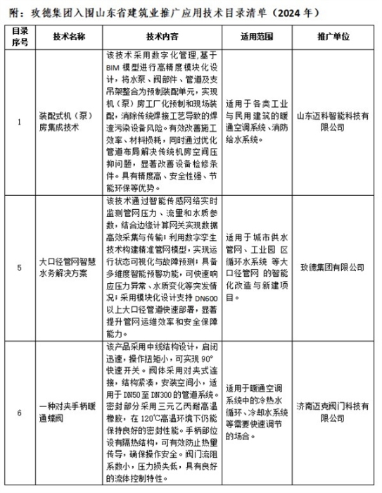 玫德集團(tuán)3項(xiàng)新技術(shù)(產(chǎn)品)入選《山東省建筑業(yè)推廣應(yīng)用技術(shù)目錄(2024)》