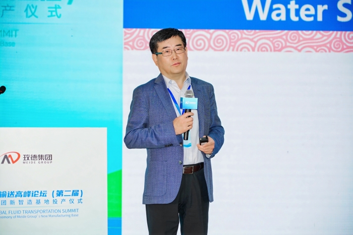 在市政分論壇上,來自水利部水利規(guī)劃設(shè)計(jì)總院、清華大學(xué)、福建省建筑設(shè)計(jì)研究院、北京工業(yè)大學(xué)等機(jī)構(gòu)的專家,就壓力鋼管應(yīng)用、城市供水水質(zhì)挑戰(zhàn)、管道技術(shù)標(biāo)準(zhǔn)等議題展開深入探討。玫德集團(tuán)市政BG研發(fā)中心總監(jiān)王振東發(fā)布的《玫德水務(wù)新紀(jì)元:水務(wù)場景化解決方案》,介紹了玫德分場景的軟硬一體解決方案,全面覆蓋水務(wù)領(lǐng)域的市政凈水水廠、市政管網(wǎng)、市政二次供水、給水末端及市政排水五大場景、15個細(xì)分領(lǐng)域,提供一站式供排水綜合解決方案。