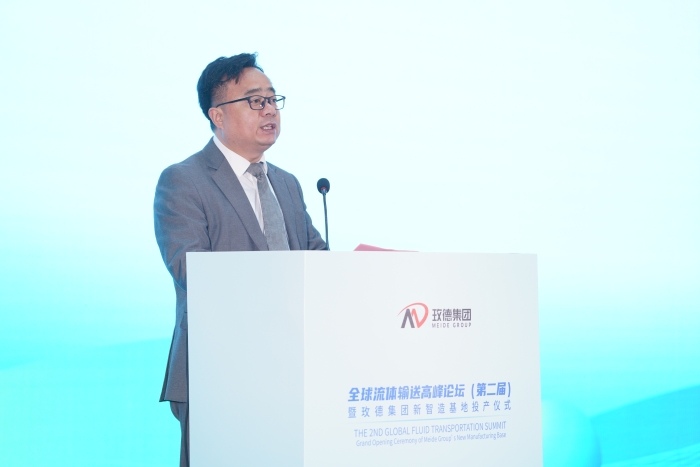 中國城鎮(zhèn)供水排水協(xié)會副會長宋蘭合在致辭中強(qiáng)調(diào)了保障城市水系統(tǒng)安全穩(wěn)定運(yùn)行的重要性,并對玫德集團(tuán)“短流程50萬噸球墨鑄管智能制造項(xiàng)目”的投產(chǎn)表示祝賀。他指出,高性能流體輸送產(chǎn)品是保障城市水網(wǎng)韌性與安全運(yùn)行的關(guān)鍵基礎(chǔ),期待通過行業(yè)合作推動技術(shù)進(jìn)步。
