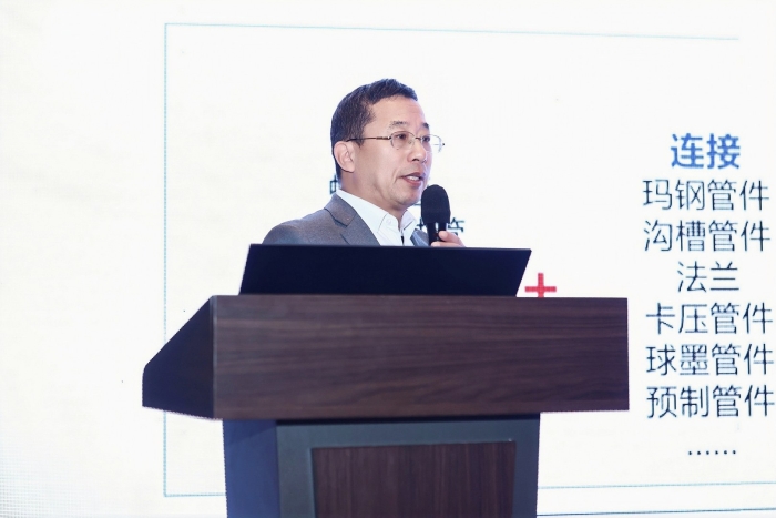 玫德集團市政BG水利BU球墨管材管件研發(fā)部經理孫允月發(fā)表《球墨鑄鐵管助力現代管道系統(tǒng)建設》主題演講,緊扣城鎮(zhèn)水務發(fā)展核心需求,剖析了球墨鑄鐵管在行業(yè)中的應用價值與發(fā)展趨勢,重點介紹了玫德集團的產品優(yōu)勢、玫德鑄管的核心優(yōu)勢:產品覆蓋標準全、規(guī)格全、壁厚等級全、接口連接方式全,產品實現DN80-DN2600全規(guī)格覆蓋,配套多系列管件可按需定制,適配市政供水、水利工程、排水防洪等多場景;依托高純鐵水生產、“一罐到底”短流程等領先工藝,以及全自動化智造產線,鑄就產品硬核品質;同時打造“產品+解決方案”一站式服務,覆蓋智慧水務管理、管道安全監(jiān)測等全產業(yè)鏈,搭配全球化高效服務網絡,為管道系統(tǒng)建設提供全生命周期保障。