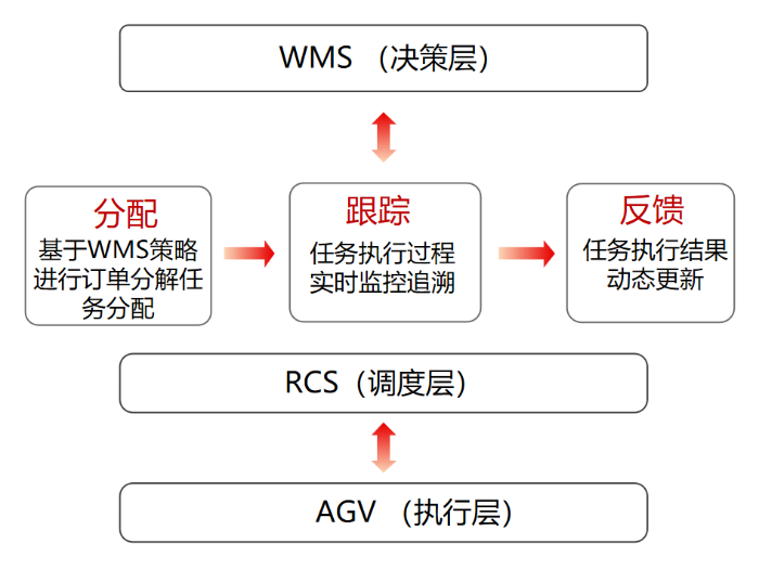 方案核心依托玫德自主研發(fā)的 “決策層 + 調(diào)度層 + 執(zhí)行層” 三級架構(gòu),各環(huán)節(jié)緊密協(xié)同、無縫銜接,確保倉儲作業(yè)精準高效、全程可追溯。